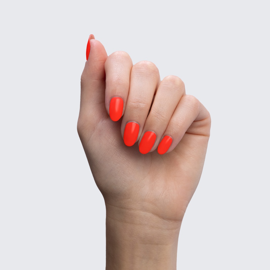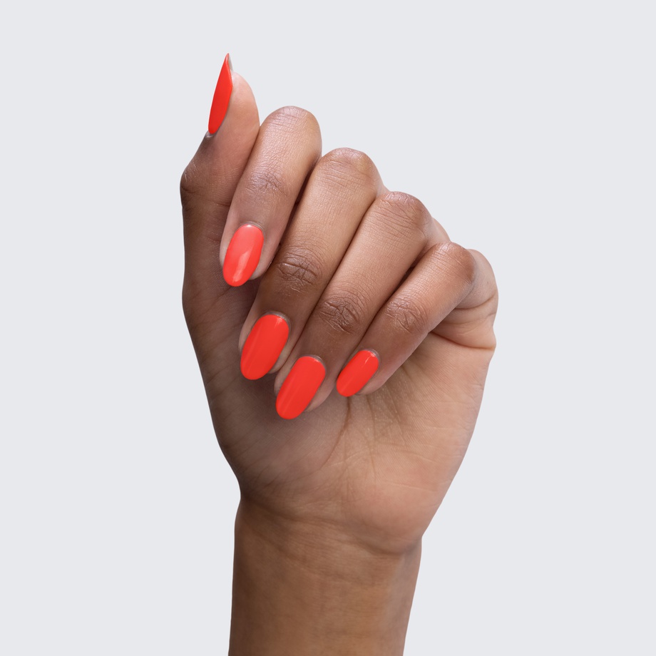 Let yourself get mesmerized by the bright hue of this neon orange polish.